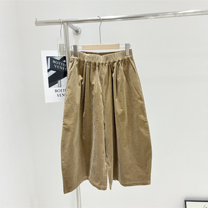 韩国订单秋冬新款显瘦灯芯绒休闲裤大腿裤阔腿裤九分收腰慵懒风女