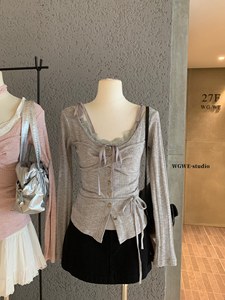 WGWE6906#广州十三行女装2025早秋装新款v领吊带长袖针织衫两件套