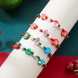 创意圣诞新款手链 跨境热销简约时尚圣诞树雪人软陶编织手链女生