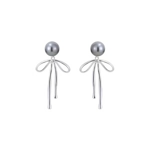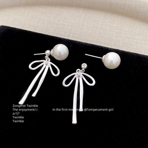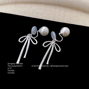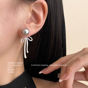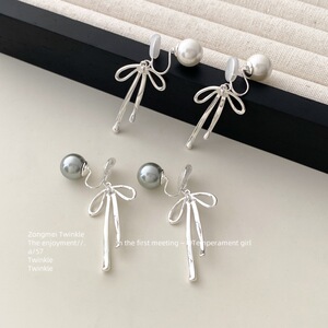 【清冷少女】一款两戴真多麻灰珍珠丝带蝴蝶结耳钉女蚊香盘耳夹