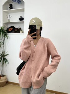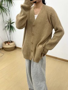 慵懒风大码v领针织开衫女2025秋冬新款休闲纯色宽松显瘦毛衣外套