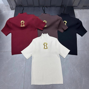 25年秋季新款巴尔家夏帕金属扣针织短袖圆领套头宽松百搭女上衣