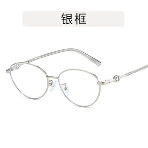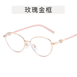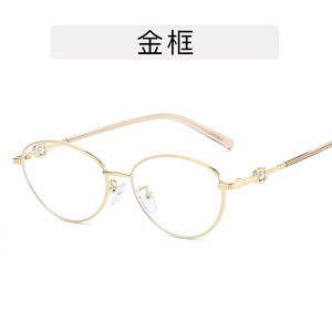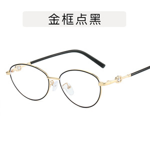 金丝珍珠潮猫眼平光镜 复古韩版椭圆防蓝光眼镜素颜神器Y2K眼镜框