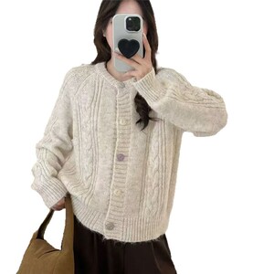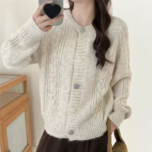高级感麻花毛衣外套女秋冬季宽松慵懒风外穿加厚针织开衫粗线上衣