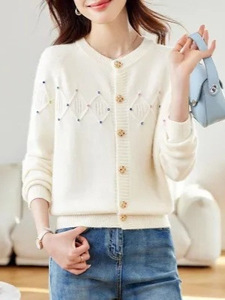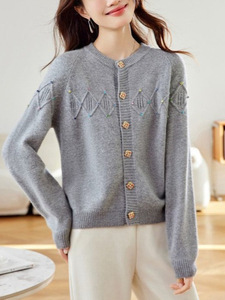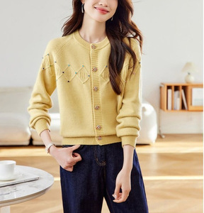 2025早秋季设计感复古菱格提花高级感毛衣外套钉珠上衣针织开衫女