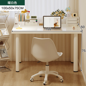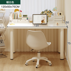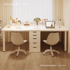 双人书桌女生卧室电脑桌梳妆台一体家用长办公桌奶油风简约工作台