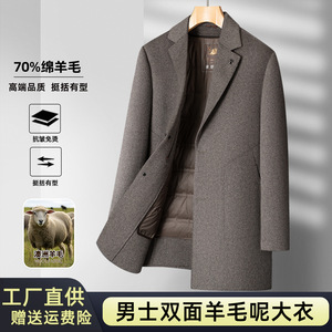 2025新款男士加厚双面羊毛呢子大衣中长款拆卸羽绒内胆西装领外套