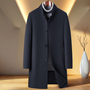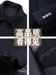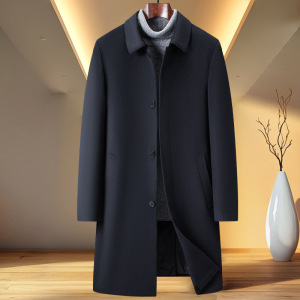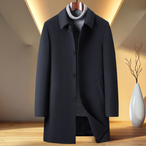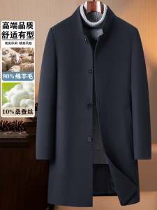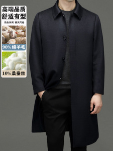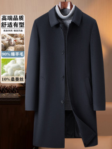 羊毛呢子大衣男秋冬季中长款翻领商务休闲中老年爸爸装桑蚕丝外套