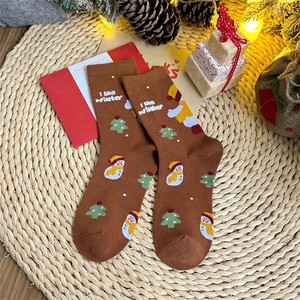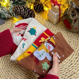 圣诞节袜子女秋冬韩版卡通可爱中筒袜圣诞礼物堆堆袜欧美跨境棉袜