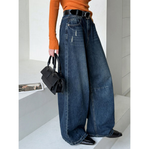 橘芷 早秋新款 牛仔长裤女设计感宽松复古水洗拖地阔腿裤子 53089