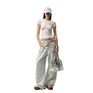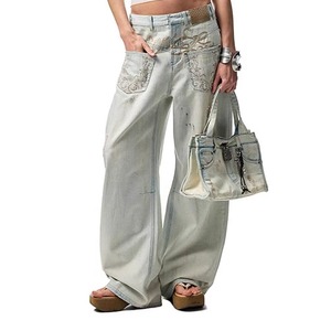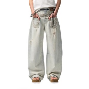 灰色水洗磨白阔腿牛仔裤女秋季新款高腰显瘦宽松垂感直筒拖地裤子