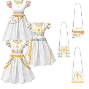 新款跨境 K-POP:猎魔女团印花 中大女童飞飞袖公主裙连衣裙+包包