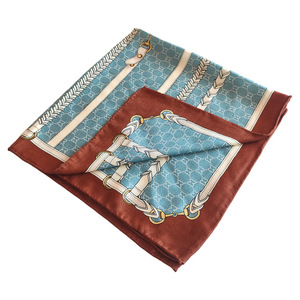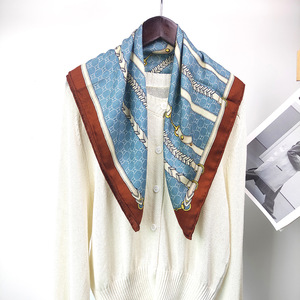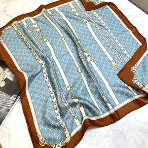 蓝色围巾链条字母双面印花70丝毛方巾围着舒服的真丝羊毛中方巾女