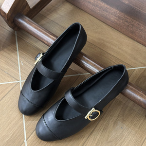 春夏圆头简约纳帕小羊皮平底搭扣赫本芭蕾舞鞋浅口单鞋玛丽珍鞋