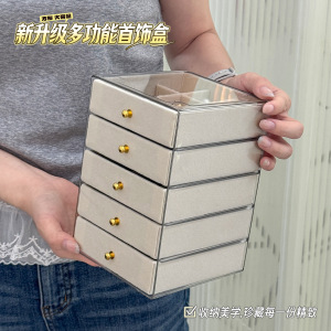 新款首饰收纳盒防氧化大容量项链耳环耳饰透明高档精致手饰品盒子