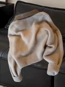 polo领针织衫外套美拉德拼接短款双拉链毛衣女春秋复古时尚感修身