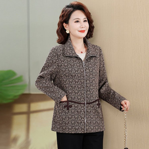 中老年女士秋装洋气新款休闲上衣时尚翻领春秋季外套妈妈宽松夹克