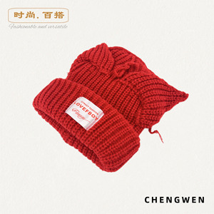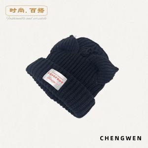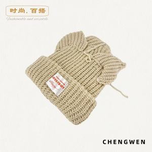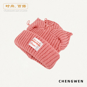猪猪耳朵毛线帽子女秋冬季纯色加厚护耳保暖针织帽狐狸耳朵套头帽