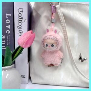 mini版拉布布泡泡玛特四代小挂件搪胶脸毛绒公仔防尘防刮花脸罩