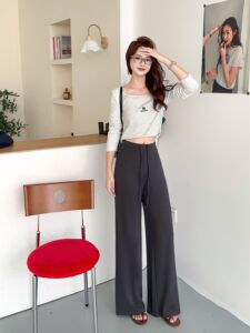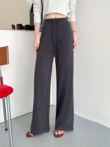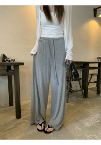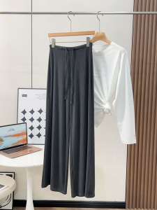灰色糯糯阔腿裤秋季新款休闲垂垂裤高腰宽松显瘦慵懒风拖地长裤