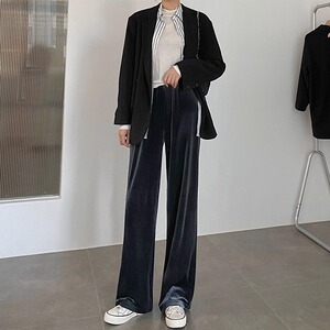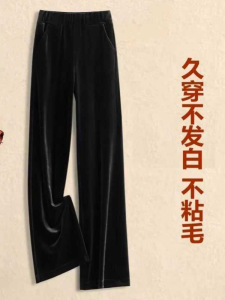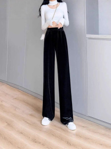 高腰金丝绒窄版阔腿裤女2025春秋款加厚外穿垂感百搭直筒休闲裤子