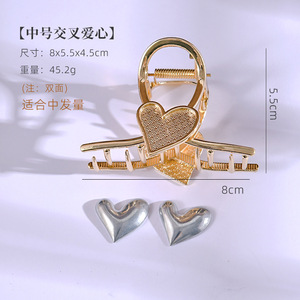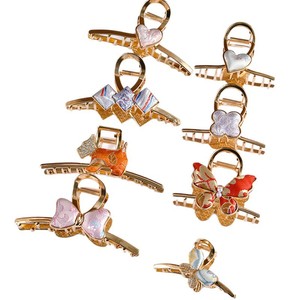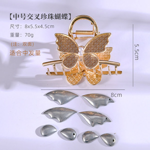 新款宋锦抓夹DIY底胚点钻合金鲨鱼夹带盖子凹槽饰品配件多款式