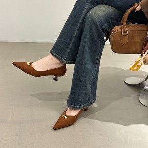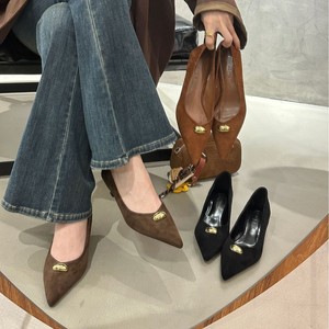 复古浅口气质百搭高跟鞋女一脚蹬绒面小金豆不累脚单