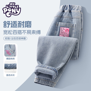 小马宝莉女童牛仔裤春秋洋气女孩直筒裤子2025新款儿童秋季阔腿裤