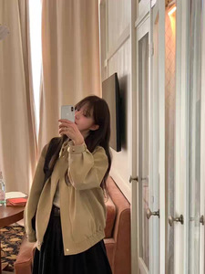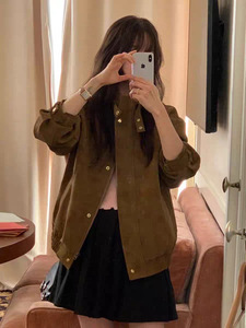 现货 2025秋季新款韩版OB*ET宽松复古立领拉链麂皮机车夹克外套女