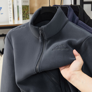跨境摇粒绒外套男加厚保暖2025秋冬新款韩版休闲立领男士夹克批发