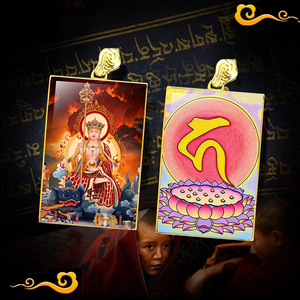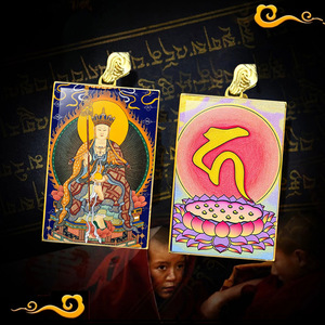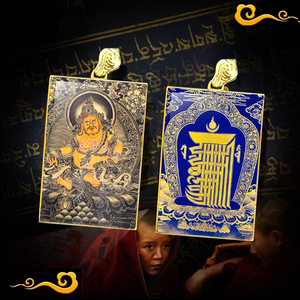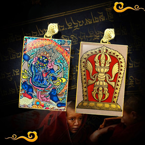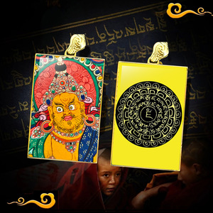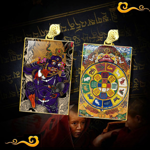 2×3绿妈妈扎基赵公明药师黑财双面真金电镀唐卡嘎乌盒厂家直批