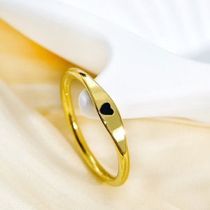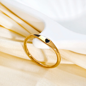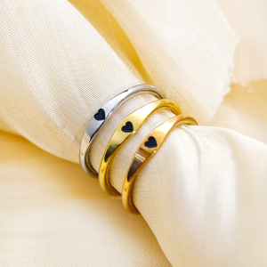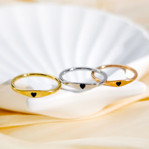 日韩风亚马逊简约钛钢爱心滴油戒指女结婚求婚尾戒素圈手饰品批发