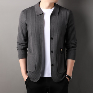 针织开衫男士毛衣外套春秋新款潮流男装休闲纯色简约上衣一件代发