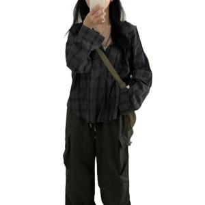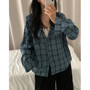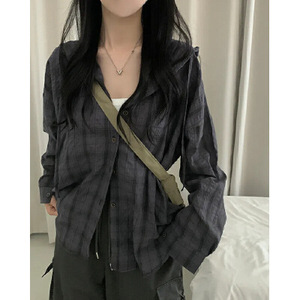 外贸跨境女士韩版百搭格子连帽衬衫外套女防晒格纹长袖衬衣东大门