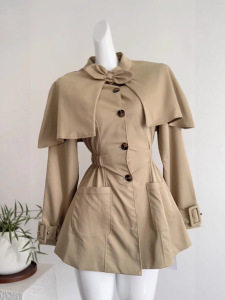 『欣幸』南韩贵女千金感两件套英伦风可拆卸收腰斗篷风衣外套套装