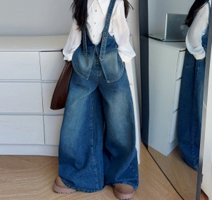 女童设计感牛仔背带裤套装春秋季2025新款儿童韩版洋气衬衫阔腿裤