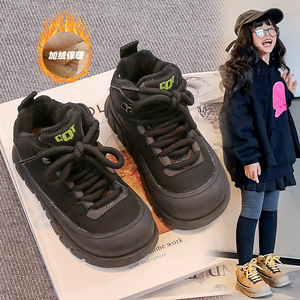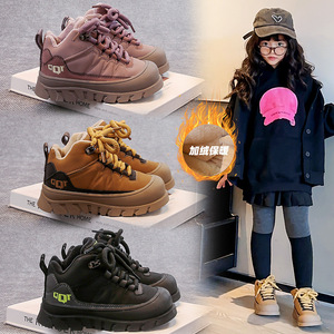 儿童棉鞋2025年冬季加绒男童防滑运动鞋女童二棉马丁靴中大童短靴