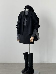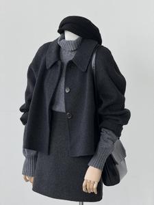 小个子套装女秋冬季韩系加厚保暖短款毛呢外套呢子大衣高腰半身裙
