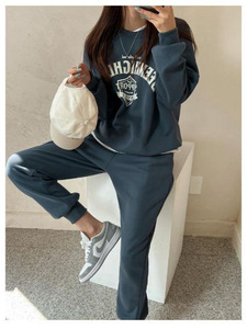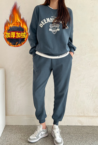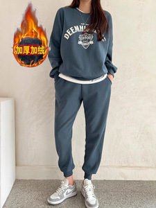 2023秋冬加厚韩国运动休闲套装女时尚洋气显瘦卫衣阔腿裤两件套