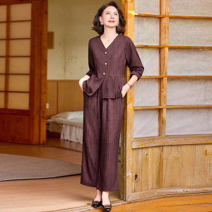 妈妈装气质优雅休闲套装2025秋季新款时尚显瘦中老年女装两件套潮