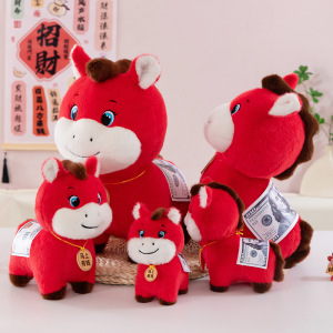 新款马年吉祥物小马公仔毛绒玩具可爱马年红色玩偶银行开门红礼物