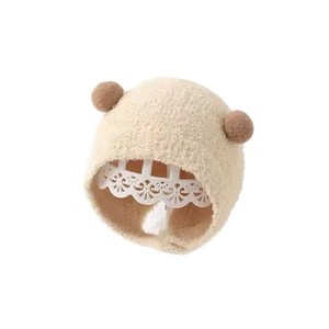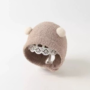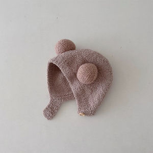 婴儿帽子秋冬季小月龄可爱超萌保暖男女宝宝护耳毛绒套头帽纯色潮