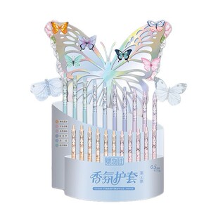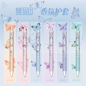 集物社香氛护套蝴蝶创意按动学生中性笔黑色ST双珠速干刷题签字笔