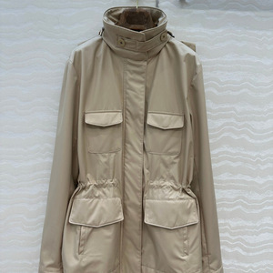 2025秋季新款简约时尚百搭立领拉链设计腰部抽绳纯色风衣外套潮批