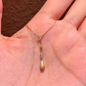 极简主义~y字拉丝水滴项链闪钻极细锁骨链女轻奢高级感配饰新款