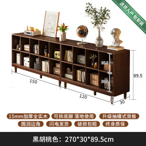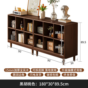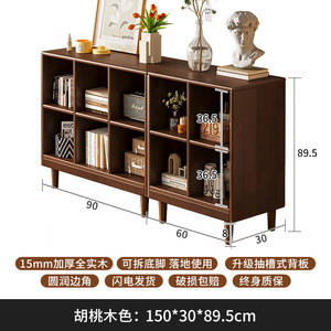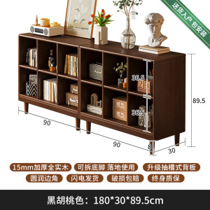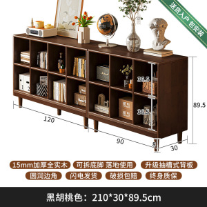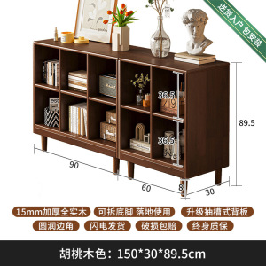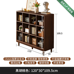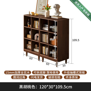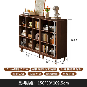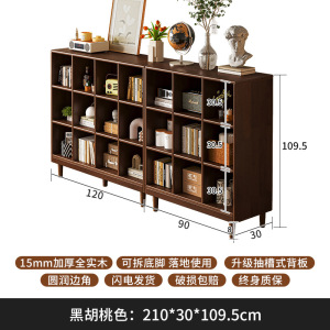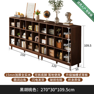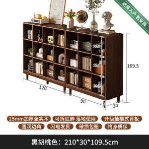 实木书架胡桃木飘窗格子柜客厅落地储物一体书柜靠墙置物柜