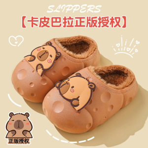卡皮巴拉冬季儿童棉拖鞋男童保暖加绒防水加绒中大童小孩包跟棉鞋