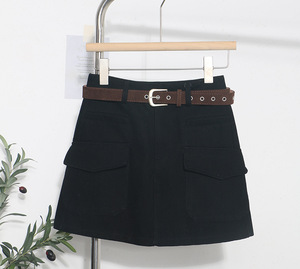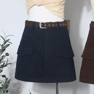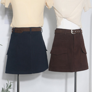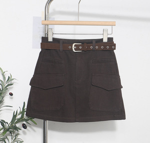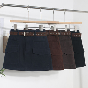 实拍 配腰带咖色半身裙女秋冬高腰显瘦百搭包臀裙防走光短裙 8505