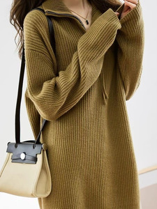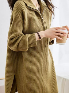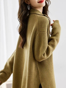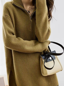 中长款毛衣女秋冬2025新款时尚慵懒风宽松显瘦半拉链打底针织上衣