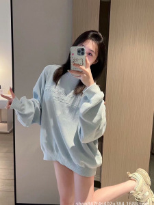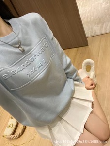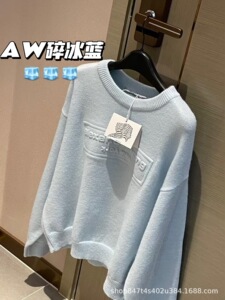 大王碎冰蓝AW软糯浮雕字母LOGO宽松慵懒毛衣女